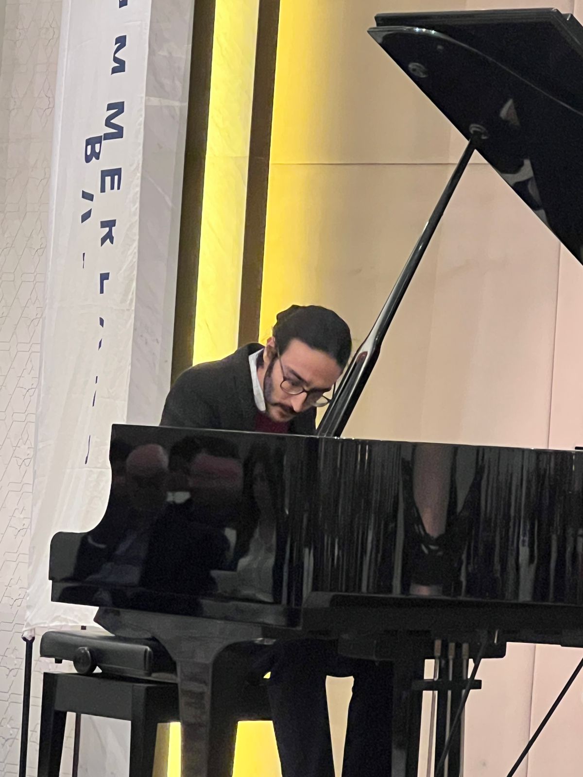 افتُتحت الأمسية مع الپريلود والفيـوغا بمي الصغير من كتاب البيانو المعدّل ليوهان سباستيان باخ، حيث قدّم العازف فارس عبد الله قراءة رصينة حملت مزيجاً من العمق التأملي والدقة الفنية التي تميّز هذا العمل، فبدا الحوار بين المقدّمة التأملية والفيوغا ذات الطابع الحركي كاشفاً عن عبقرية باخ في بناء النسيج الموسيقي المتماسك.
