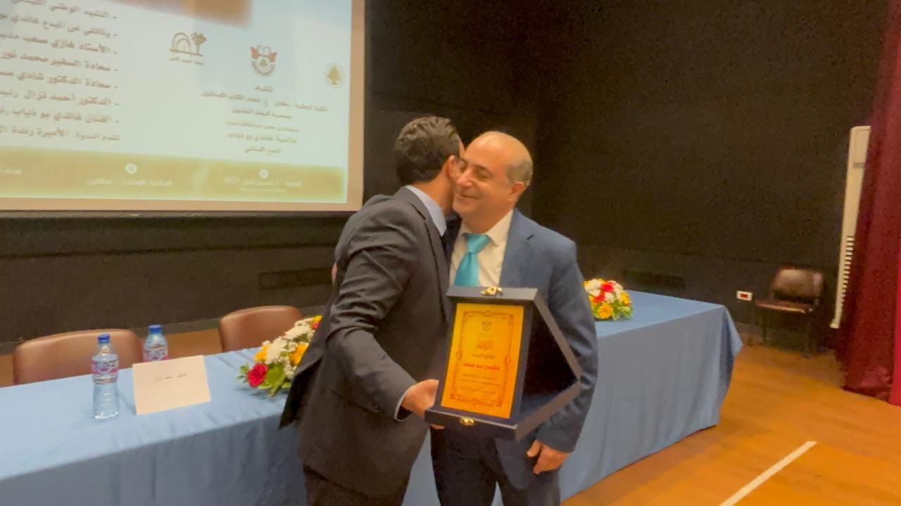 بعدها قدّم نزال لبو ذياب درعاً تكريماً باسم الإتحاد.